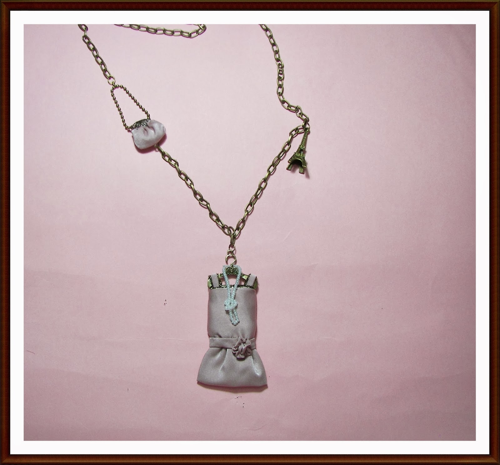 Collar vestido charlestón con bolso a juego y charm torre Eiffel.
