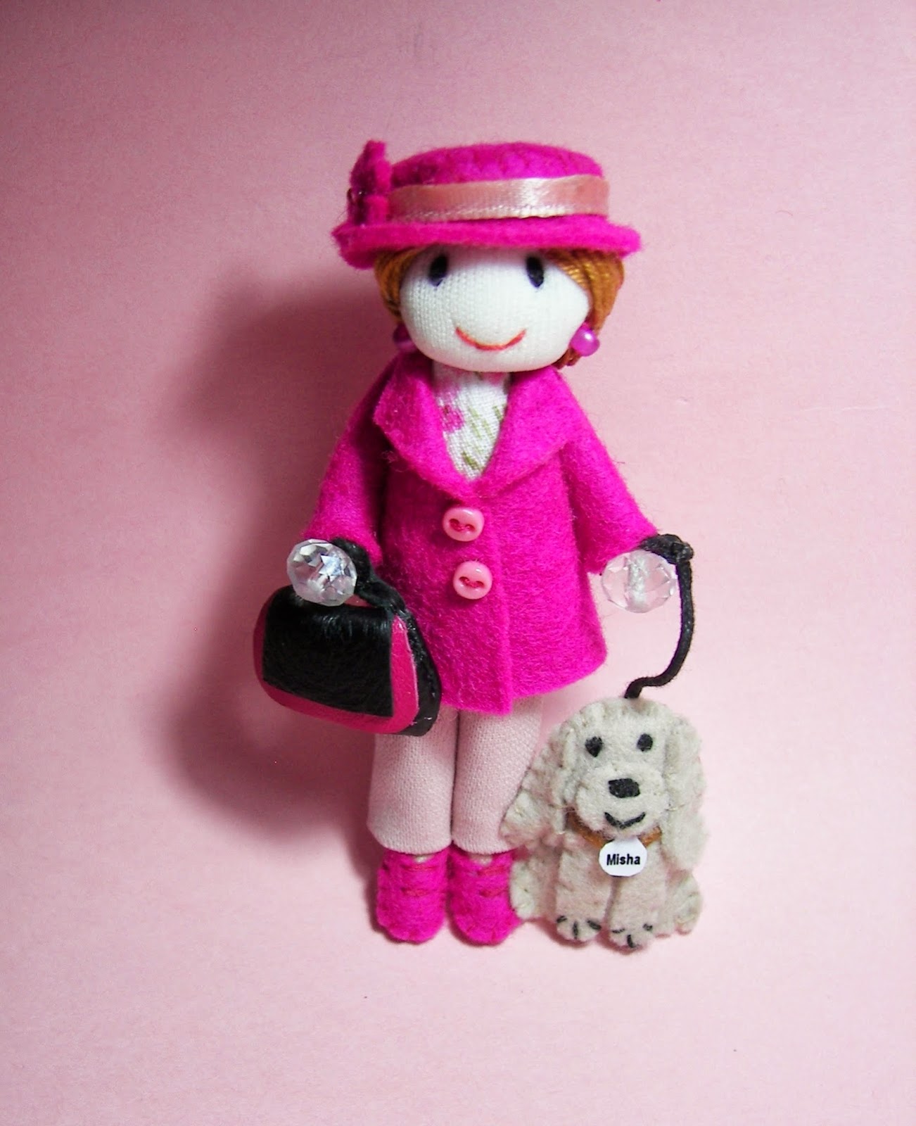 Os presento mis nuevas creaciones. Broche muñeca Gorjuss, broche muñeca con perros labrador y broche de muñeca con perro cocker spaniel (personalizados con sus nombres)