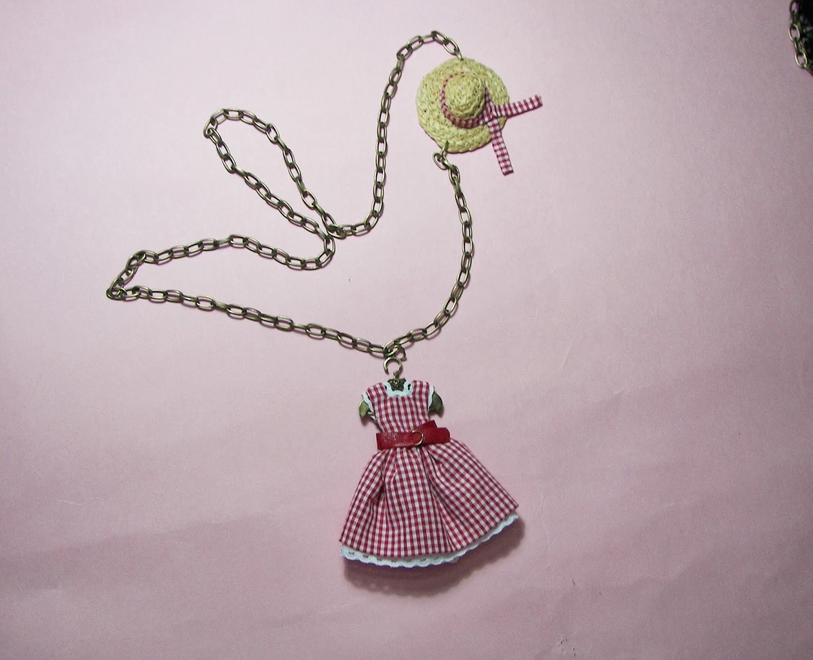 Collar vestidito cuadros vichy en rojo con sombrerito.